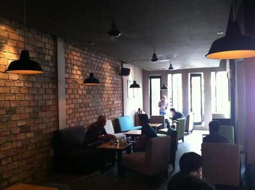 The small and warm space of this shop is not only at the entrance decorated with wood but also at old photographs of the musicians, singers. The images are skillfully decorated to create highlight for shop ...