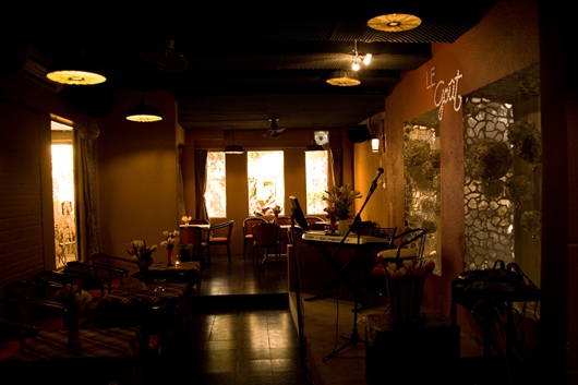 Cacophony has 3 floors with different styles. The first floor is decorated simply with warm colors, but really impressive with musical instruments for a lively and hectic rock night. The second floor is present and past Saigon with black and white photos, sophisticated sofas, warm rough brick walls. The most prominent floor that is chosen by many people is the third floor with 3D space that is made from lamp-posts, boards of street names, old painted walls, coats of paint peeled off, decayed windows, old roof, ring-dove coop, seats near the ground that is like “quán cóc” – the roadside-make-shift-shop in street corner in Hanoi… 2.Le Gout cafe